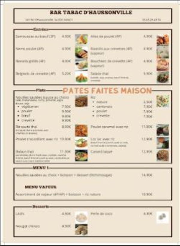 Nous proposons de bons plats faits maison et les services de notre Bar Tabac